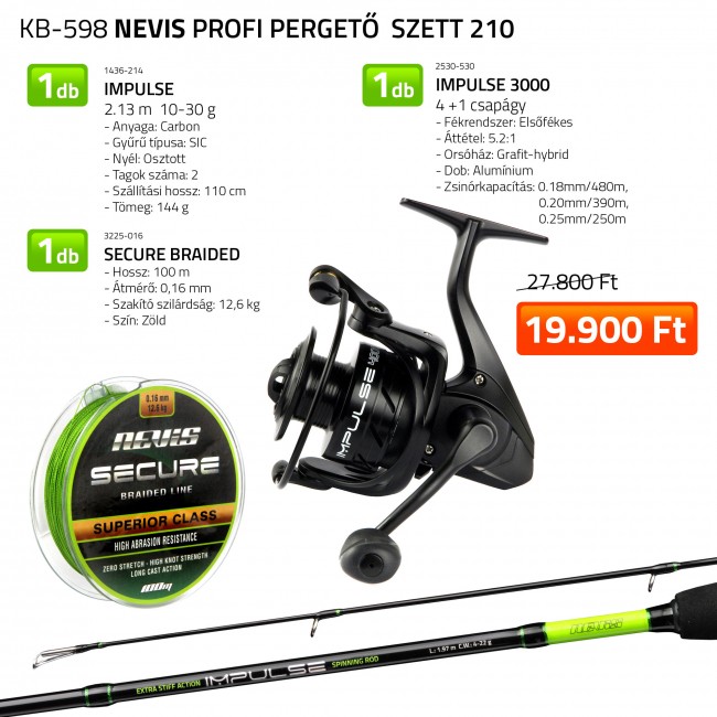 |   | 1 db bot: 2,13 m 10-30 g 2 részes + 1 db orsó: Impulse 3000 + 1 tekercs fonott zsinór |
